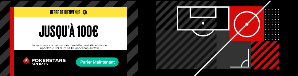 Pariez sans risque avec le bonus de notre partenaire PokerStars Sports ! Votre 1er pari est remboursé jusqu'à 100€ !